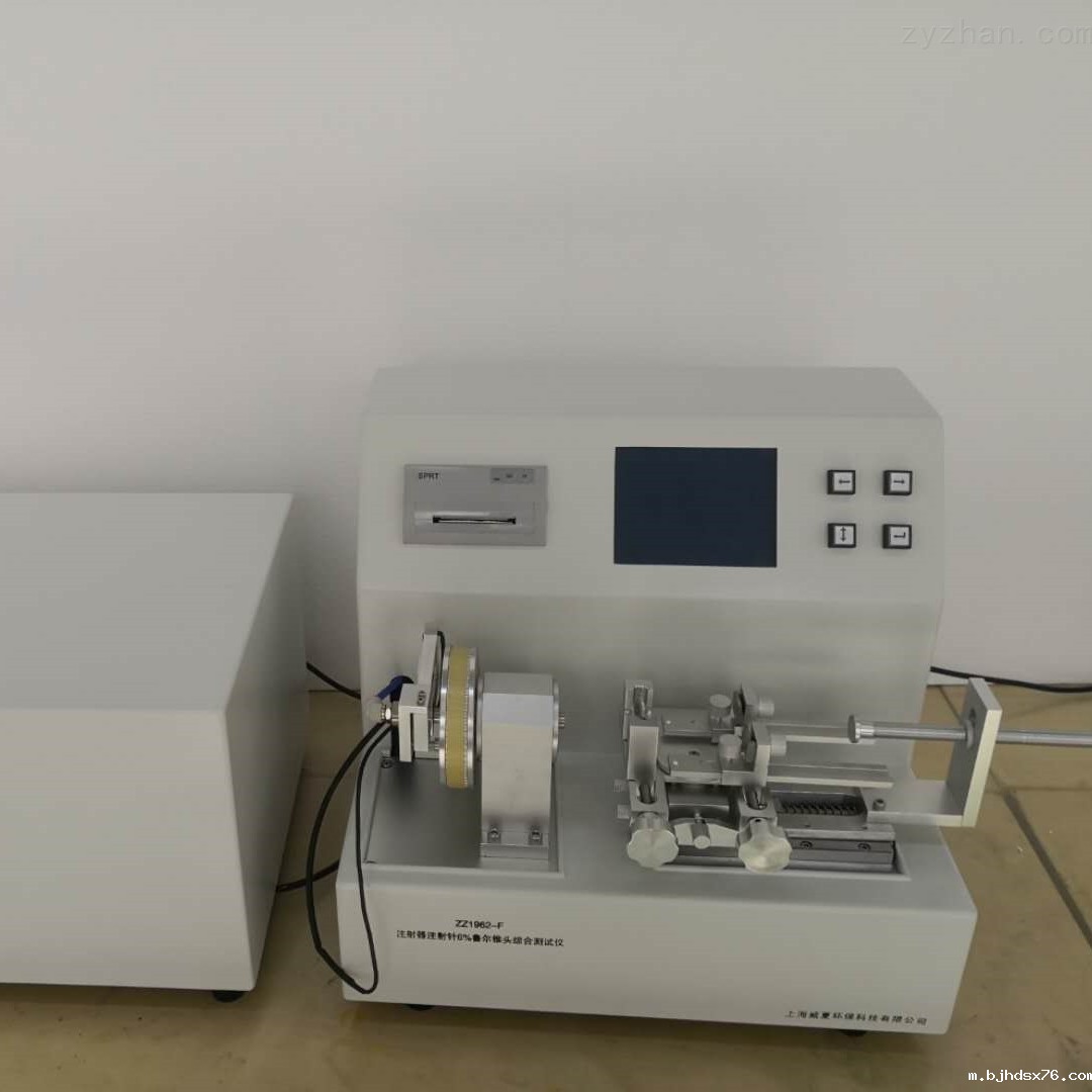 采用PLC可编程控制器,5.7英寸彩色液晶显示屏,中文菜单显示。在测试过程中显示装配施加的轴向力、扭矩、保持时间、内部水压、分离力、可测试注射器和注射针的漏液、漏气、分离力、旋开扭矩、易装配性、抗滑丝性、应力开裂等各项性能,注射器的公称容量,并在测试过程中显示装配施加的轴向力、扭矩,保持时间、内部水压、分离力、泄漏率值,包括各种6:100(鲁尔)接头,(锁定和非锁定),如输液器、输血器、输液针、导管、麻醉过滤器等。可由机载打印机打印出测试结果。