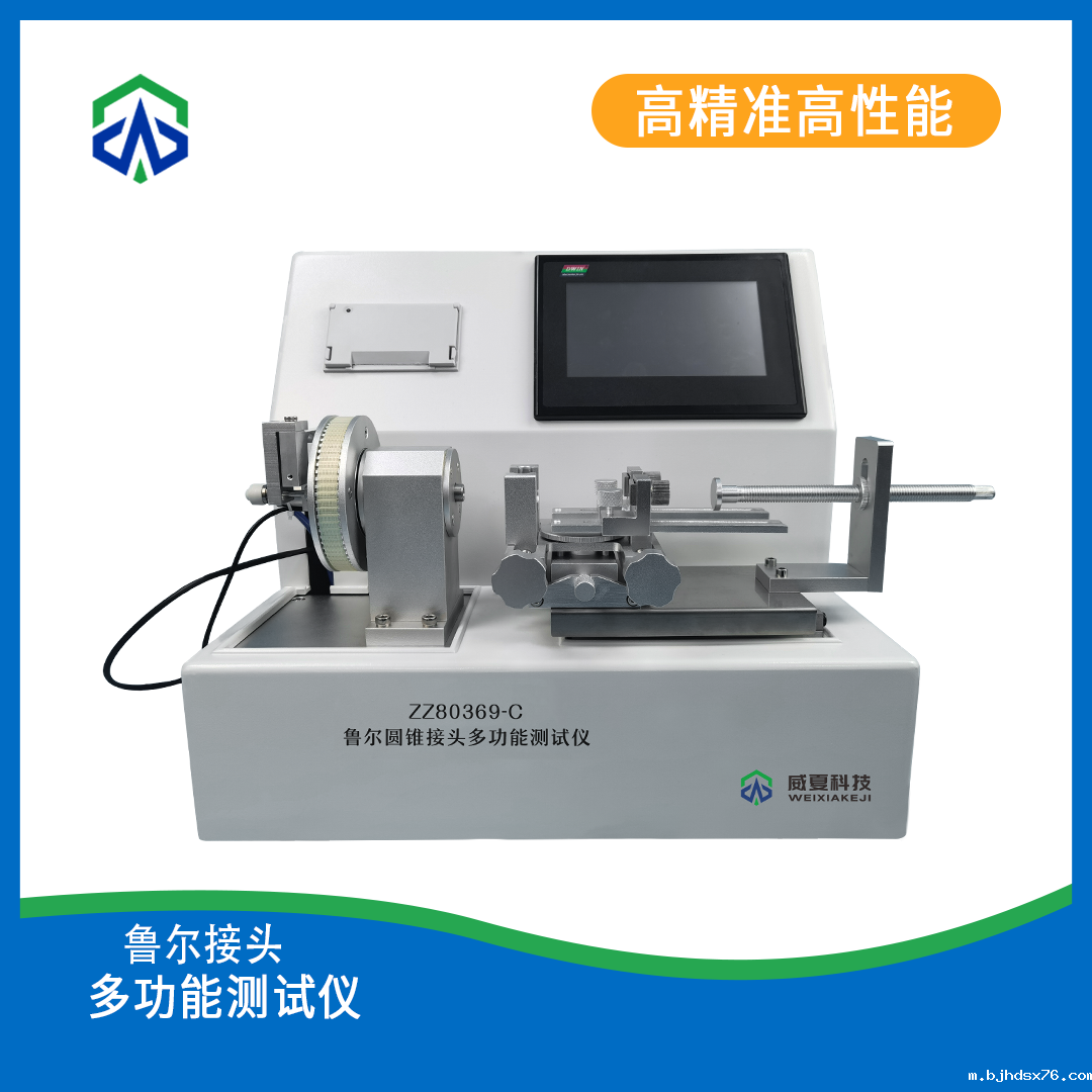 在测试过程中显示装配施加的轴向力、扭矩、保持时间、内部水压、可测试鲁尔接头的漏液、漏气、分离力、旋开扭矩、易装配性、抗滑丝性、应力开裂、压力衰减泄漏、正压液体泄漏、负压空气泄漏等各项性能,并在测试过程中显示装配施加的轴向力、扭矩,保持时间、内部水压、分离力、泄漏率值,包括各种6:100(鲁尔)接头,(锁定和不锁定),如输液器、输血器、输液针、导管、麻醉过滤器等。