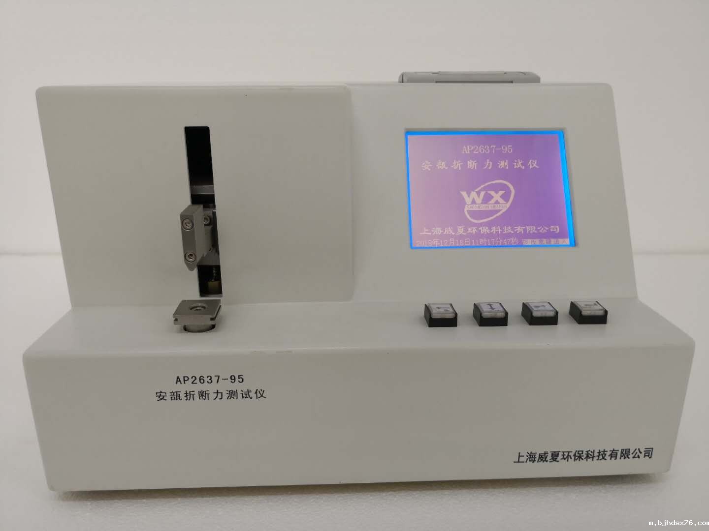 仪器采用6英寸(120X90)单彩液晶显示屏,中文菜单显示,用键盘控制液晶显示屏上的菜单选择规格、标准支架、上行、下行、时间、标定、测试次数、实时显示折断力及折断力曲线,并可有机载打印机打印。